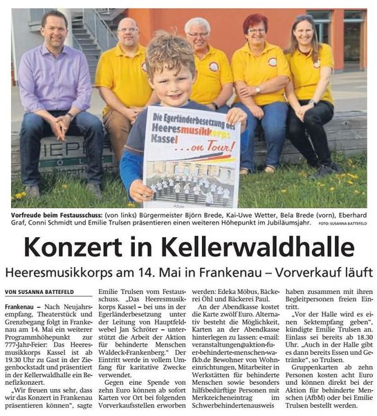 Ankündigung Benefizkonzert in Frankenau im Mai 2018 -