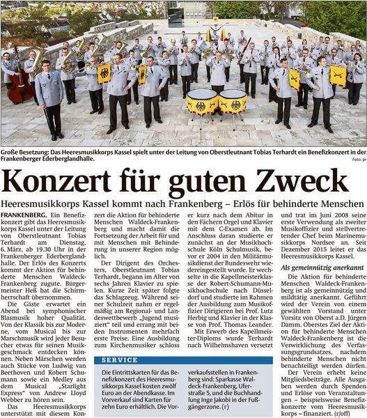 Heeresmusikkorps Kassel kommt nach Frankenberg -